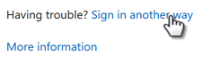 la opción que aparece en el cursor que dice Sign in another way
